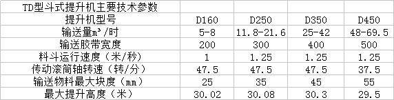 TD、D型斗式提升機(jī)適用于垂直輸送粉狀、粒狀、及小塊狀的磨吸性較小的散狀物料,如糧食、煤、水泥、碎礦石等,提升高度最高40m,其特點(diǎn)為:結(jié)構(gòu)簡(jiǎn)單,運(yùn)行平穩(wěn),挖取式裝料,離心重力式卸料,物料溫度不超過(guò)60。C。TD型按JB3926-85《垂直斗式提升機(jī)》標(biāo)準(zhǔn)設(shè)計(jì)制造,與傳統(tǒng)D型斗提機(jī)相比,輸送效率高,料斗形式多,應(yīng)優(yōu)先選用。您可以根據(jù)您的產(chǎn)量的大小選著合適的機(jī)型。